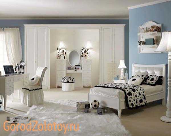 Такая дама уже достаточно взрослая. В комнате почти ничего не осталось из «детского». И если у нее оформление еще для малышей, то пора уже его переделать для взрослого человека. Поскольку у дочери сформированы свое мнение и вкусовые качества, интересуйтесь ее мнением и пожеланиями – это очень важно!