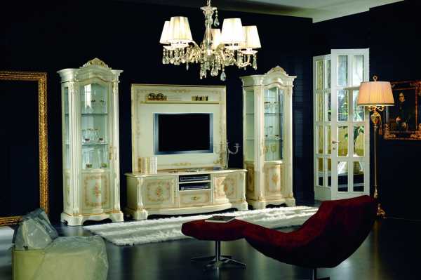Мебель стильная и прекрасная – это если говорить двумя словами, и они довольно емкие. Такую мебель делают, в основном, из дорогих натуральных материалов. Выглядит она эффектно, хоть может быть довольно громоздкой. В этом случае важно соотношение габаритов комнаты с размерами мебели – в маленькой гостиной вариант дорогой классики будет неуместен.