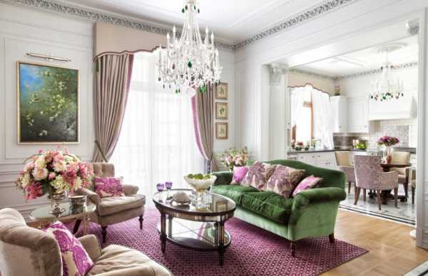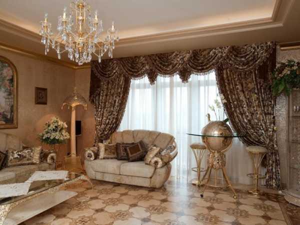 Важными составляющими классического интерьера считаются люстры, изящный декор и тяжелые шторы.