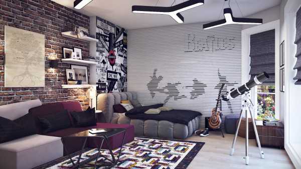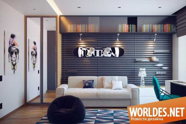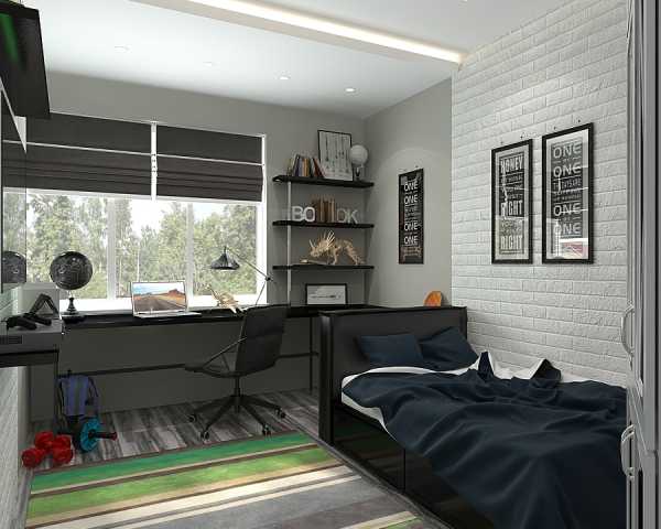 Дизайн комнаты для подростка в современном стиле повторяет основные принципы оформления помещения для взрослых, но при этом необходимо учесть один нюанс. Дело в том, что для мальчика-подростка в обязательном порядке нужно будет создать в дополнение к двум перечисленным ещё и зону хобби. Здесь можно разместить те предметы, которые соответствуют его влечениям, например, плакаты с изображениями музыкантов и актёров, тренажёры или материалы коллекций.