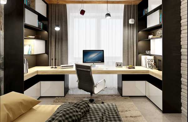 Что касается рабочей зоны, то в обязательном порядке для молодого человека она должна быть оборудована компьютерным столом. Следует установить специальные стулья, так как если работать за компьютером, сидя на обычном стуле, можно достаточно серьёзно испортить осанку. Рядом с компьютерным столом будет уместно разместить шкаф или полки с книгами. Для работы с ними на стол нужно установить дополнительные настольные осветительные приборы.