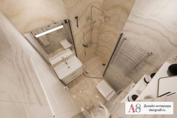 Для отделки помещения использовали плитку Atlas Concorde Russia из коллекции Supernova Onyx (расцветка Honey и Pure White). Душевую сделали в исполнении «строительный душ»: установили трап, цементной стяжкой залили поддон, положили плитку, смонтировали стеклянное ограждение. Здесь использовали мозаичную плитку Caramelle Mosaic Amazonas. Такой выбор упростил выполнение технологического уклона.