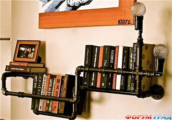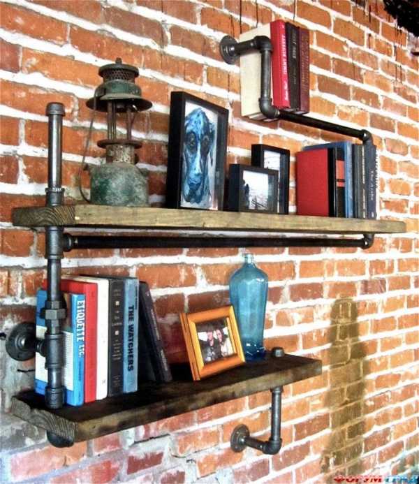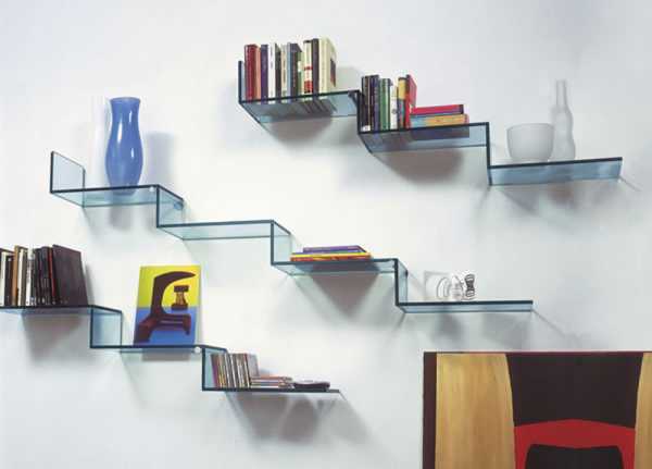Это современный, модный и стильный вариант. Выглядят такие настенные полки для книг очень красиво. Можно сделать такие полочки самостоятельно, правда потребуется некоторые навыки и специальные инструменты. В связи с популярностью этого материала, в магазинах можно без труда найти полочку, которая подойдет к интерьеру вашей комнаты.