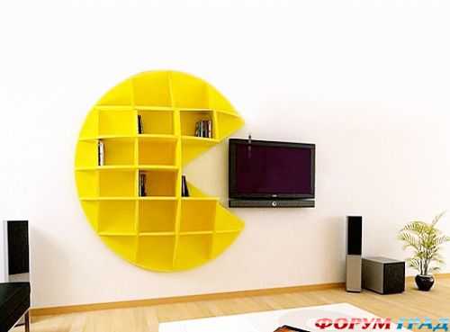 Итальянский дизайнер Mirko Ginepro своим дизайном книжной полки отдал дань одному из первых персонажей компьютерных игр, всегда прожорливому круглому и очень опасному для главного героя Pacman-у.