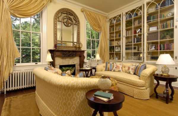 Если вы не желаете делать большой акцент на книжных полках, попробуйте замаскировать их под общий дизайн комнаты. Если ваша гостиная выполнена в элегантном и классическом стиле, арочные мотивы в дизайне полки не нарушат общей идеи, а только придадут интерьеру больше шарма и шика.
