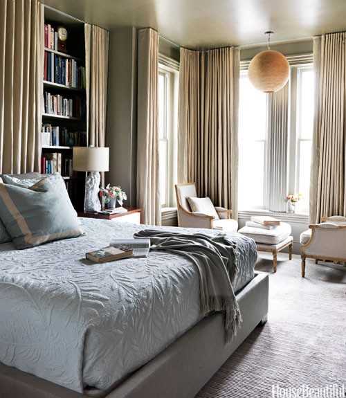 Не стоит забывать и о тренде, который был популярен в 2010 году — размещение книг на полках корешками внутрь. Белые и кремовые странички вносят свои нотки изящества в спальную комнату. Книги сами по себе могут стать прекрасным украшением комнаты, но если их правильно разместить, то они позволят внести нечто действительно новое и неповторимое.
