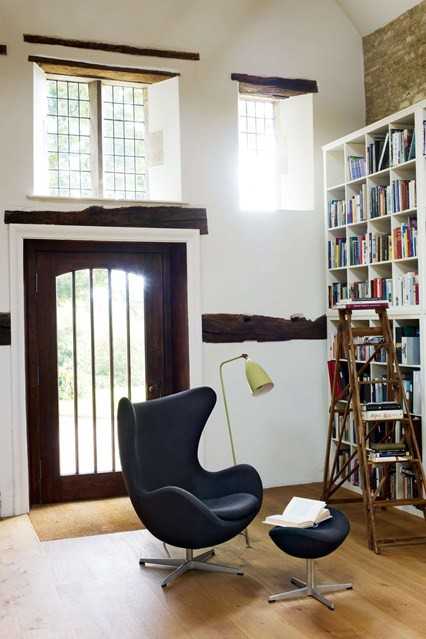 Кресло Egg Арне Якобсена, появившееся в 1958 г., стало классикой дизайна. Его органичная форма и плавные линии замечательно контрастируют со средневековыми мотивами библиотеки в этом доме в Оксфодшире.