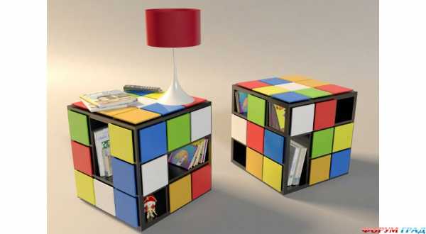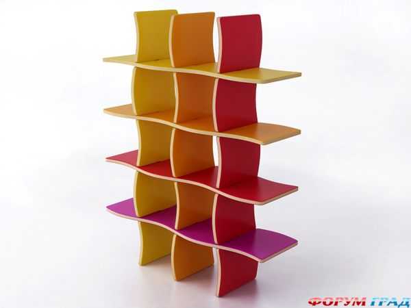 - Стеллаж в эффектном цвете с нестандартной формой;
