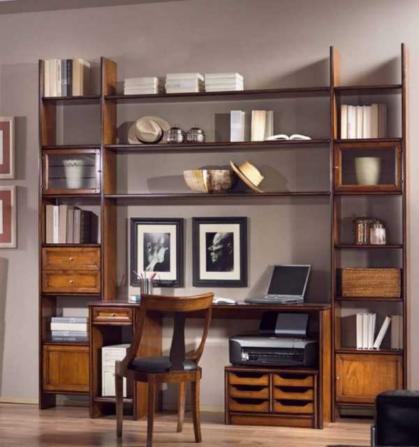 Домашний офис для работы, не только идеальный способ организовать бизнес, не выходя из дома, но и прекрасное место для разработки дизайна книжных стеллажей и полок. Вы можете занять всю стену шкафами со стеклянными дверцами или без них, исходя из ваших удобств и предпочтений.