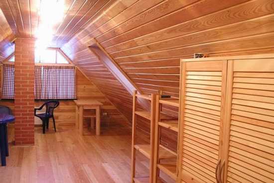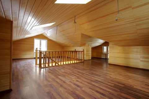 Мансарда, отделанная евровагонкойРассчитывать требуемое количество вагонки необходимо в метрах квадратных, при этом желательно делить общую площадь помещения на участки. Эти участки составляют между собой единую плоскость, которую в дальнейшем делят на ширину рабочую. В эту величину не входит размерный параметр паза.