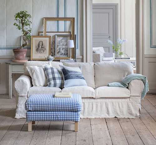 Деревенский стиль в интерьере не может существовать без большого количества декоративных подушечек, вязанных или украшенных вышивкой. Комната станет легче, романтичнее, если ее украсить текстилем с изображенными узорами и цветами. Вы можете комбинировать различные натуральные ткани, цвета и рисунки, но следите за тем, чтобы интерьер не стал перегруженным.