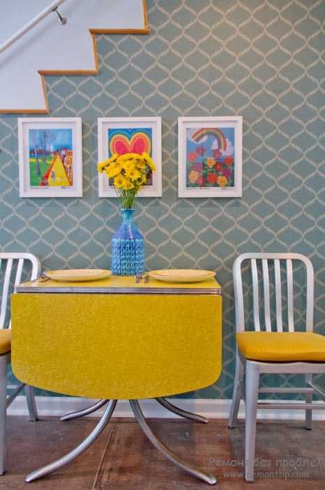 Его поверхность может быть окрашена как однотонным цветом, так и несколькими яркими красками. Как уже говорилось, ретро стиль требует смелости, поэтому при оформлении любой поверхности в квартире следует прислушиваться к своим фантазиям и предпочтениям.