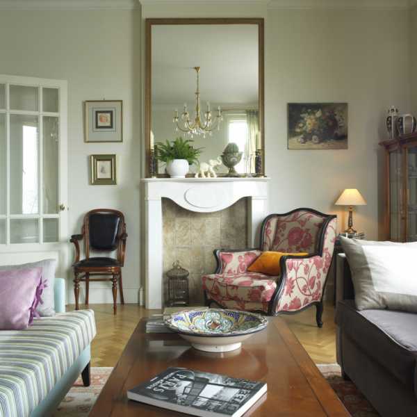 Традиционное кресло-бержер гармонично смотрится в сочетании с утончённым диваном на изящных ножках и винтажным журнальным столиком, а современный плазменный телевизор мирно соседствует с настоящим камином. Возможность комбинировать разнообразные предметы позволяет создавать индивидуальный, живой и атмосферный интерьер.
