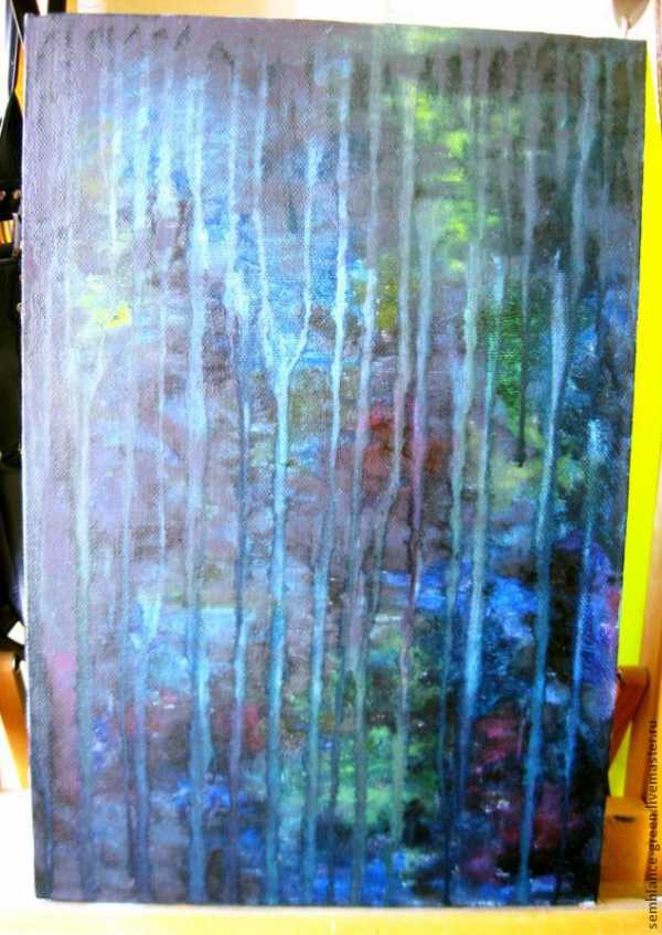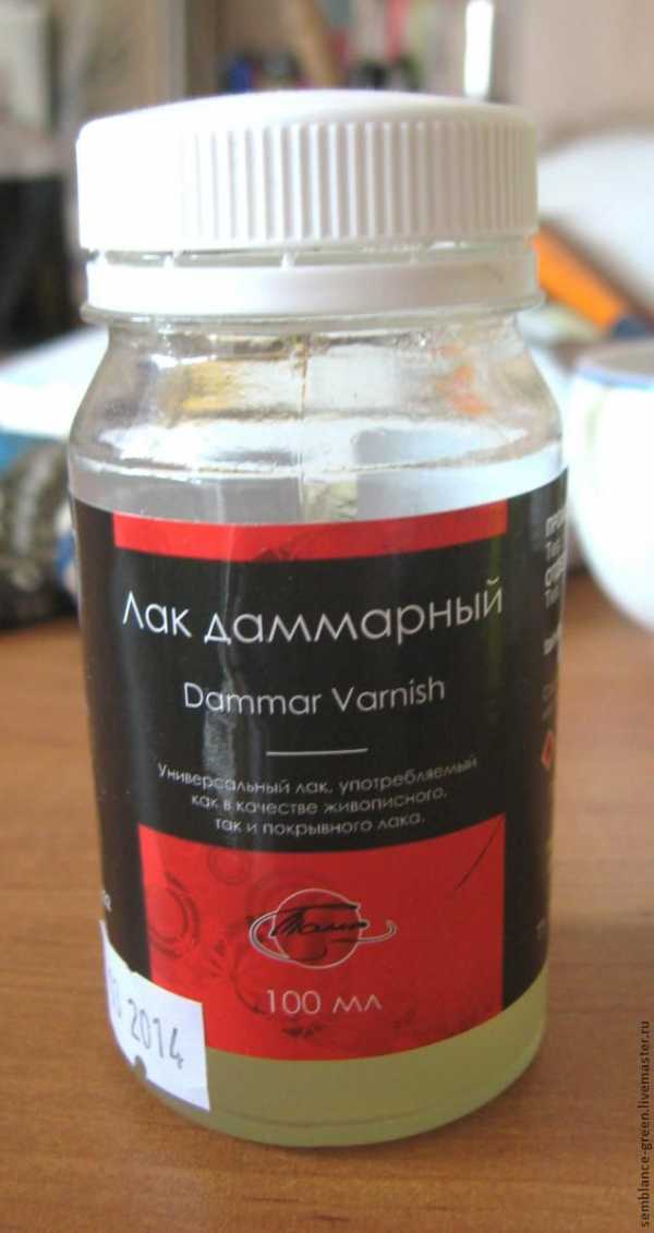 ВНИМАНИЕ: после покрытия даммарным лаком сушить картину нужно в горизонтальном положении. Лак жидкий, поэтому могут начать образовываться некрасивые потеки.