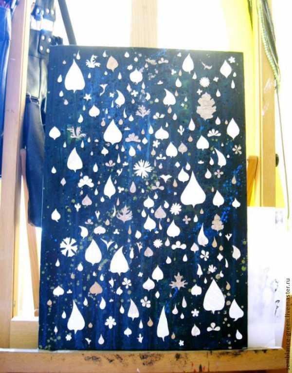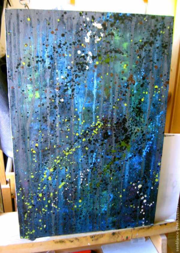 Еще один слой набрызгов. Даем картине окончательно высохнуть и покрываем слоем даммарного лака.