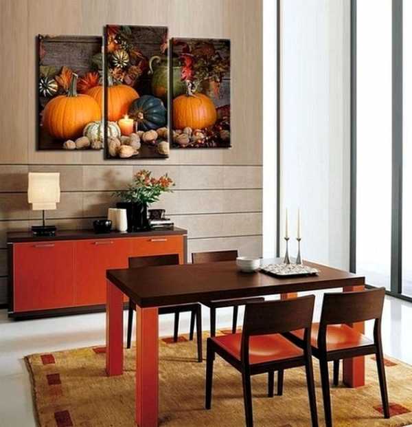 Такая модульная картина придает кухне особый уют.Во-первых, кухни часто бывают не очень большими по площади, и картина поможет зрительно раздвинуть пространство.