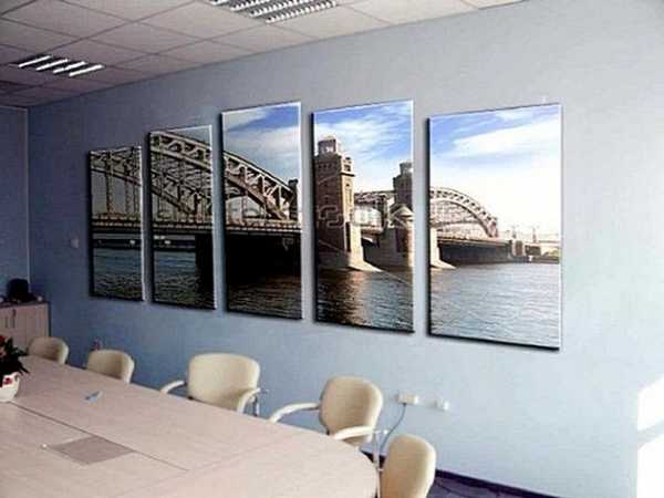 Весьма уместна будет удачно подобранная модульная картина не только в жилом помещении, но и в офисе. Это будет свидетельствовать о хорошей образованности сотрудников этой фирмы, общей культуре и наличии вкуса, что благоприятно будет влиять на ваших клиентов, да и для вас создавать приятную рабочую атмосферу.