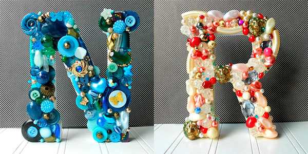 Еще один яркий и современный вариант – это украшение буквы черно-белыми фото. Идеально для дня влюбленных или свадьбы, а также на день рождения. Края изделия можно дополнительно украсить стразами.