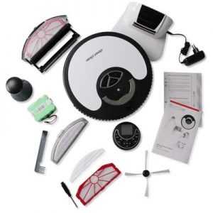 - Комплектация. Робот-пылесос дополняется дистанционным пультом, запасными щетками, фильтрами, ограничителями движения и координаторами.