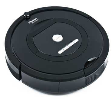 Следующая модель ассортимента компании – Roomba 770. Интересный дизайн, черный цвет корпуса и высокое качество пластика (который, правда, царапается) говорят о принадлежности серии к устройствам более высокого уровня. Roomba 770 убирает до 70 квадратов на одной зарядке никель-металл-гидридного аккумулятора. В комплекте идет пульт ДУ для управления роботом, два дополнительных фильтра, виртуальная стена. Набор такой же, как и у модели 760.