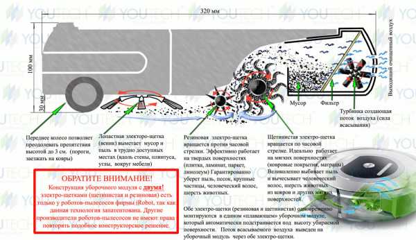 Второй, более дорогой и эффективный: как и в роботах-пылесосах для сухой уборки, с помощью щеток сгребается и всасывается пыль и грязь, далее, со специального резервуара для чистой воды с моющим средством разбрызгается по моющей поверхности, а установленные специальные щетки отчищают пол. Затем, грязная вода собирается и всасывается специальным скребком. Как видите, по настоящему моющая технология.