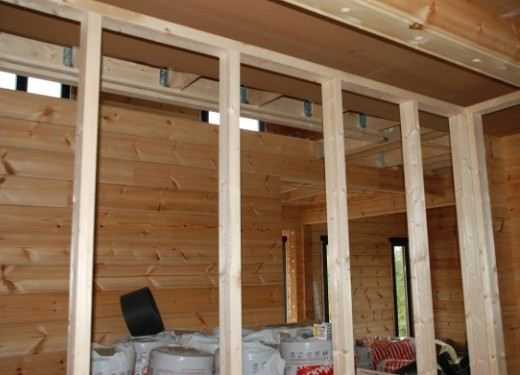 Конструкция межкомнатных стен из дерева имеет сходство с каркасным сооружением из гипсокартона. В ее основе лежит металлический профиль, который с обеих сторон обшивается природным материалом. Аналогичным образом устанавливаются внутренние стены из МДФ, ориентированно — стружечных панелей и фанеры.