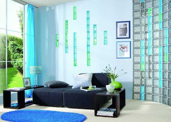 Очень экстравагантно и необычно смотрятся межкомнатные перегородки из стеклянных блоков. Эффект неповторимости такой конструкции придает прозрачность материала и оригинальное исполнение изделий. Они могут с глянцевой и матовой поверхностью, с гладким и рельефным верхним слоем и разными цветовыми решениями. Это дает неограниченные возможности полету фантазии и воплощению самых дерзких планов. Но монтаж такой красоты требует предварительных расчетов, поскольку к легковесной конструкции стеклянную перегородку никак нельзя отнести. Обычный типоразмер стеклоблока 19х19х8см, встречаются увеличенный вариант 24х24х8 см. Вес стандартного изделия около 4 кг, так что такая межкомнатная перегородка по весу не многим будет отличаться от кирпичной. Эффектно смотрятся криволинейные конструкции из стекла, для полноты композиции можно использовать блоки фасонные, которые выпускаются в форме полукругов и углов. Установка такой перегородки потребует от исполнителя много терпения и аккуратности. В силу необычных свойств стекла, рекомендуют в день выкладывать не более трех – четырех рядов, для того чтобы обеспечить требуемое сцепление и исключить возможные отклонения от прямолинейности. Ни в коем случае нельзя оставлять даже малую часть раствора на поверхности во время монтажа, его удаление после схватывания может оставить царапины.
