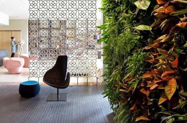 Декоративная перегородка, устроенная по принципу вертикальных жалюзи.