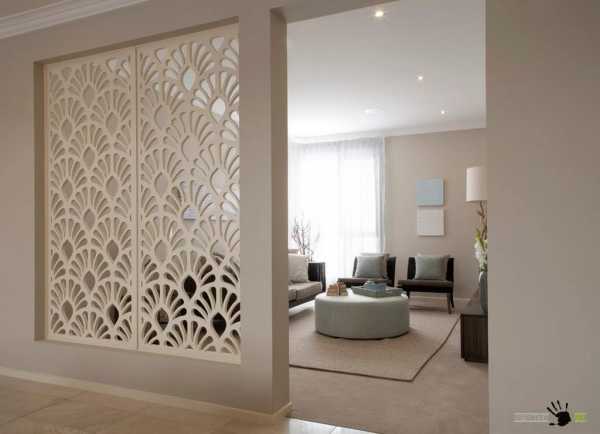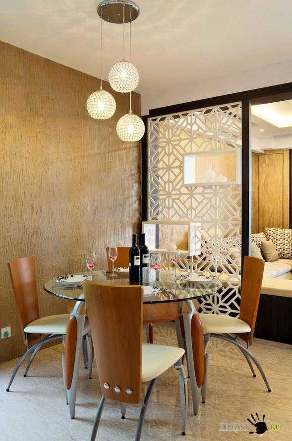 Декоративные «кружевные» перегородки, отделяющие гостиную от столовой, не препятствуют проникновения естественного света, добавляют интерьеру уникальности, но при этом выполняют свою основную функцию – зонируют пространство.