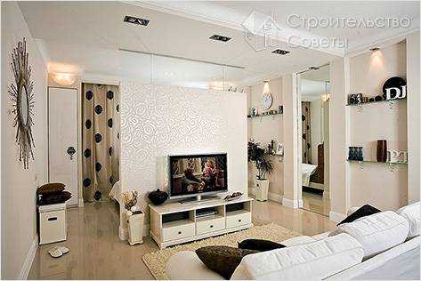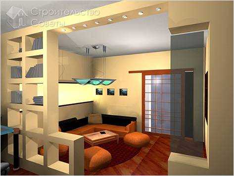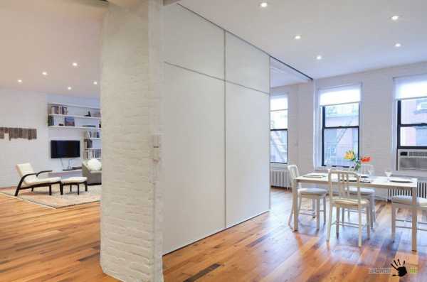 Однако, иногда такое разделение большой комнаты применяется и для однокомнатной квартиры, когда просто необходимо отделить спальную зону от той, что будет считаться «гостиной». Применяют их и для отделения кухни от столовой и в других сходных случаях.