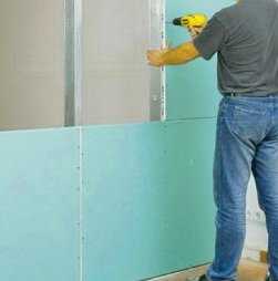 Гипсокартонный лист – очень популярный материал, используемый повсеместно. Обычный гипсокартон (ГКЛ) применяется для сухих мест, с обычной влажностью. Для обустройства перегородок в ванных комнатах потребуется влагостойкий гипсокартон (ГКЛВ). Вначале сооружают каркас из специального металлического профиля, на него саморезами крепят гипсокартонные листы с обеих сторон. При необходимости между листами ГКЛ укладывают изолирующие материалы.