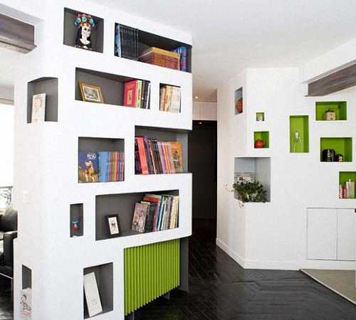 В современных квартирах и домах, чтобы разделить комнату на определенные зоны, чаще всего используют гипсокартон, которым обшивают металлический или деревянный каркас. Такая перегородка отличается малым весом и обеспечивает возможность скрыть электрические кабели и другие коммуникации.