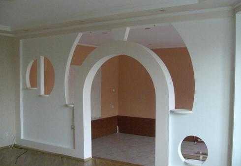 Стены из гипсокартонных панелей – очень удобный материал для сооружения разнообразных форм и конфигураций перегородок. Например, если вы решили создать арку в проеме двери или сквозное окно полукруглой или другой формы, то гипсокартон позволит осуществить практически любую конфигурацию. Это может быть колонна или ниша. Также за гипсокартоновыми перегородками очень удобно прятать коммуникации в виде проводов электропроводки, интернета, кабельного телевидения или трубопроводов. Главным недостатком данной перегородки будет невысокая прочность, если вы захотите прикрепить, что-то тяжелое на стену. Это решается использованием двойного слоя гипсокартоновых листов, что значительно упрочнит стену и сделает возможным повесить книжную полку, например.
