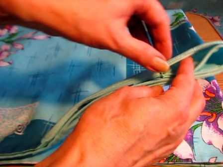 - Сложите ткань «лицом» наружу, чтобы клапан оказался между двумя слоями материала.