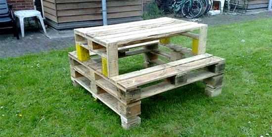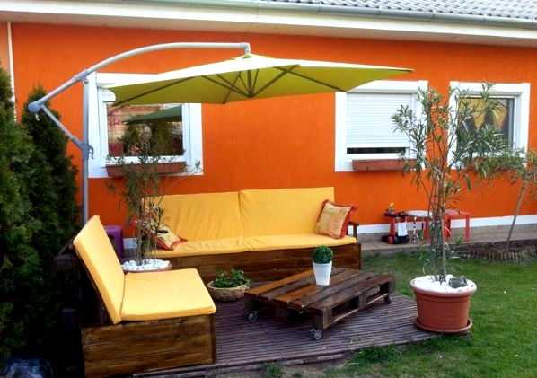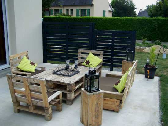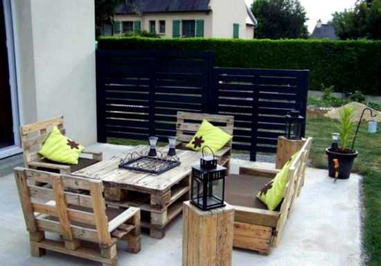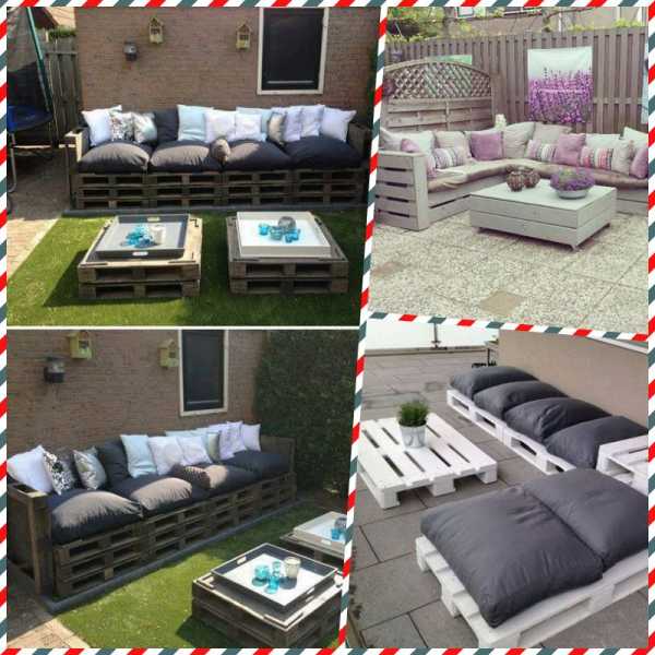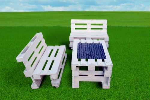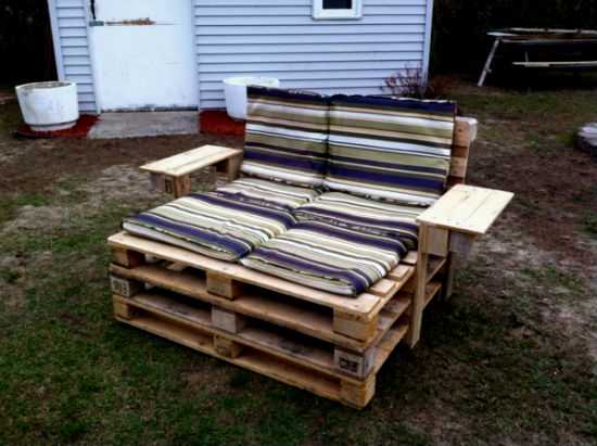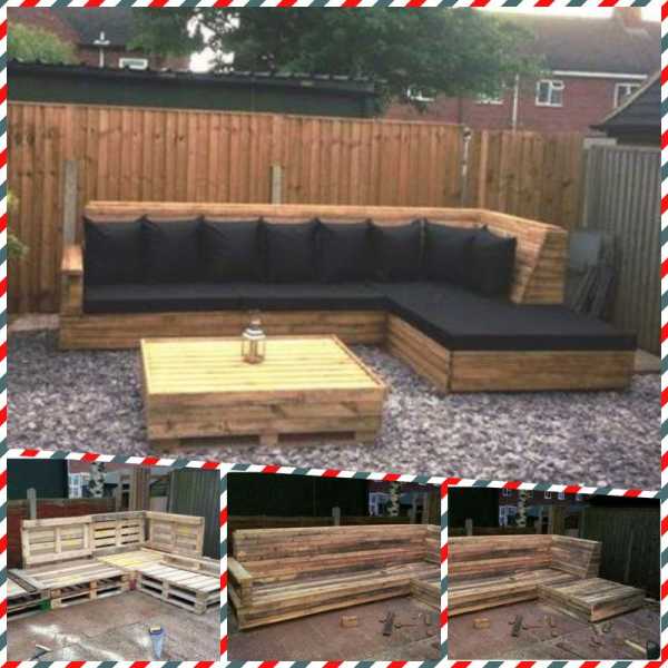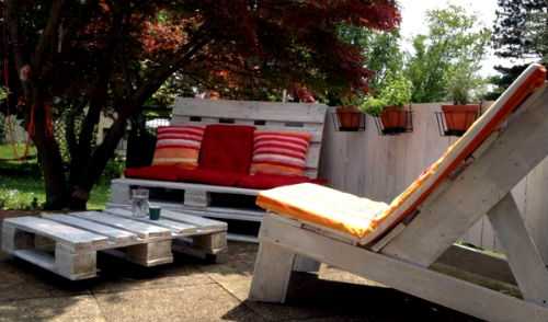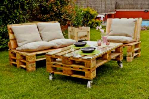 Вот, пожалуй, самая лучшая идея использования ненужных паллет, для сада такая мебель самое то. Из них можно смастерить все самое необходимое: удобный садовый диванчик (прямой или угловой), столик и стулья.