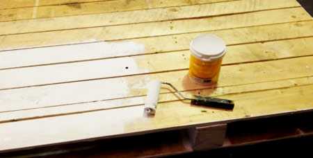 После того как дерево уже обработано, идет следующий этап. На нем осуществляется покраска поддона. Достаточно будет одного слоя. Подойдет и эмалевая, и маслянистая, и аэрозольная краска. День потребуется на высыхания. Уже после или вместо процесса покраски можно наносить водооталкивающий лак. Предпочтительны средства для наружных работ.