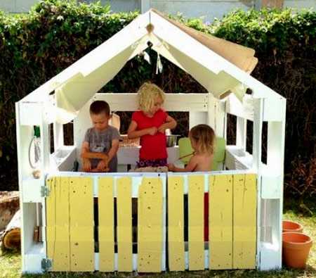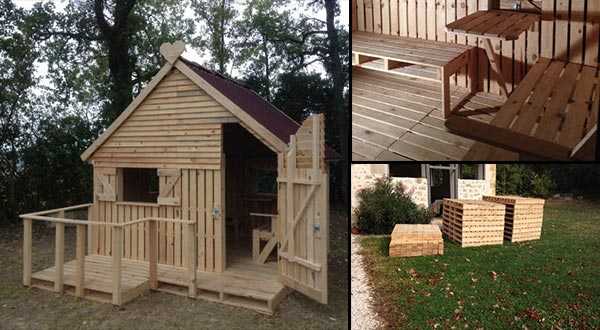 - Вариативность применения. Идей построек для дачи из деревянных поддонов большое множество.
