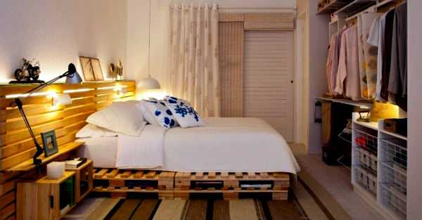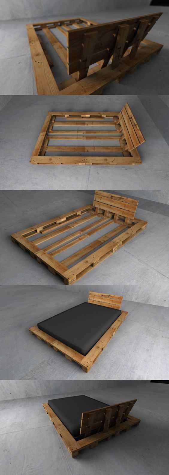 Уложенные друг на друга паллеты (конечно же закрепленные при помощи шурупов) с мягким матрасом могут послужить кроватью. Пример создания такой кровати представлен в видео в конце статьи.