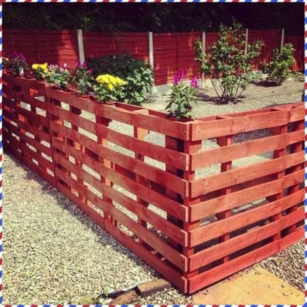 Предварительно паллеты можно покрасить или как-либо еще декорировать. В таком случае ограждение получится еще и внешне красивым.