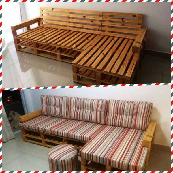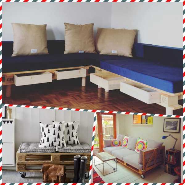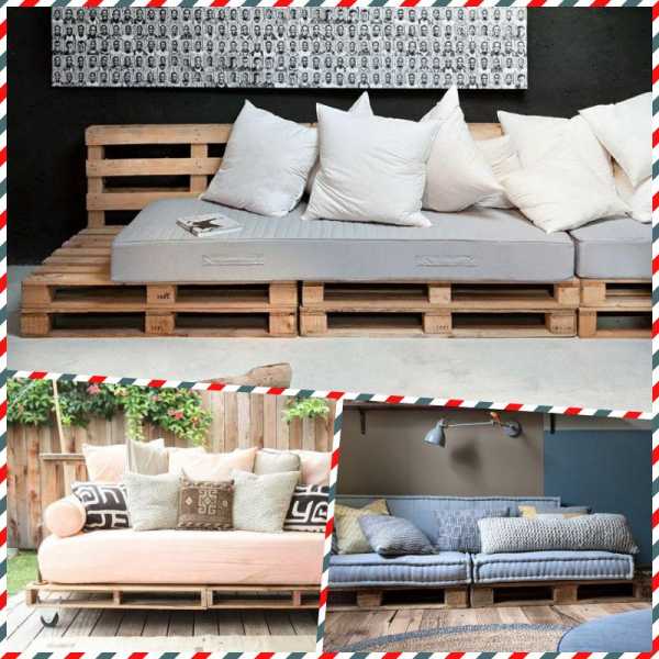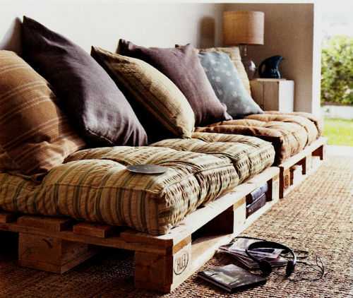 Вероятно, это одна из самых бюджетных идей создать свой собственный диван. Вы можете просто поставить паллеты друг на друга, закрепить между собой с помощью саморезов, прикрутить спинку, из тех же поддонов, и разместить подушки. По желанию — установить колесики или предать цвет вашей конструкции.