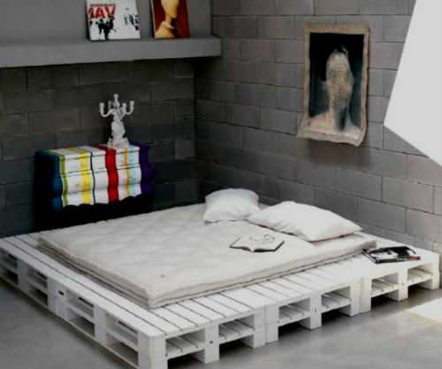 С помощью нескольких поддонов можно сделать подобный диван. В первом проекте использовался один слой поддонов, а на фотографиях ниже вы увидите высокие кровати из нескольких слоев.