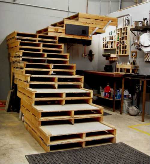А ведь из поддонов, при желании можно смастерить полноценную лестницу, пусть она смотрится не совсем эстетично, зато не требует особых затрат при изготовлении.