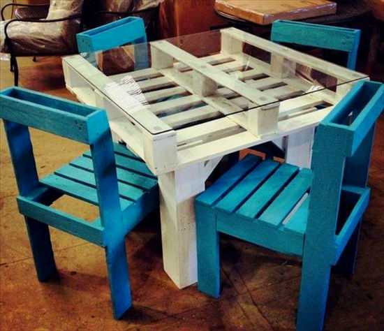 А ведь из поддонов можно смастерить обеденный, садовый или рабочий стол. Красиво и одновременно с тем стильно, а также очень аккуратно смотрится стол из паллет со стеклянной столешницей.