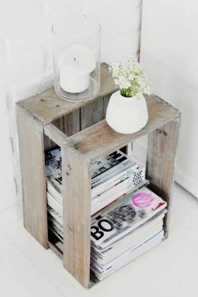 Из дощечек от ненужного поддона можно сколотить замечательную тумбочку для мелочей.
