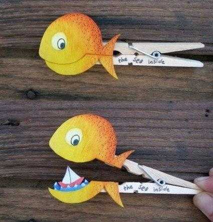 Прищепкам нужно только добавить несколько деталей, чтобы сделать их похожими на какую-нибудь зверушку или самолёт. А ещё разобранные на половинки прищепки можно использовать как детали конструктора, и собрать из них, скажем, кукольную мебель, скелет динозавра или целую крепость.