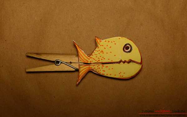 Игрушка из прищепок своими руками готова. Результат на лицо. Наша рыбка получилась очень интересной поделкой, которую ребенок сделал самостоятельно.