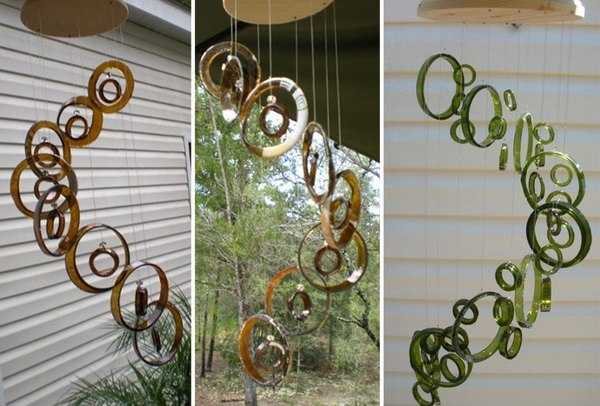 И последняя идея что сделать из стеклянных бутылок – музыку ветра! Выглядит вполне себе красиво, для дачи сойдет, верно?