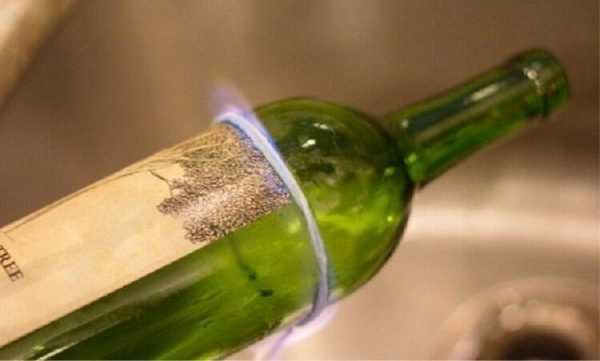 - Надеваем защитные перчатки и маску, фиксируем нашу тару в резаке и начинаем орудовать стеклорезом. Во время резки обязательно нужно поворачивать стеклотару, чтобы срез получился максимально рровным.