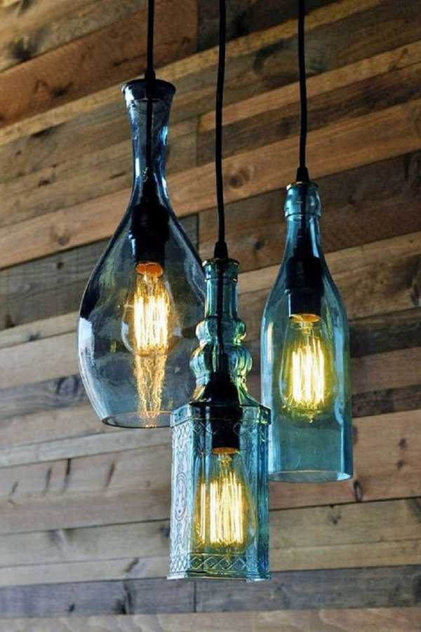 Светильник или люстра из стеклянных бутылок так же является популярным способом утилизации стекла среди приверженцев эко-жизни: