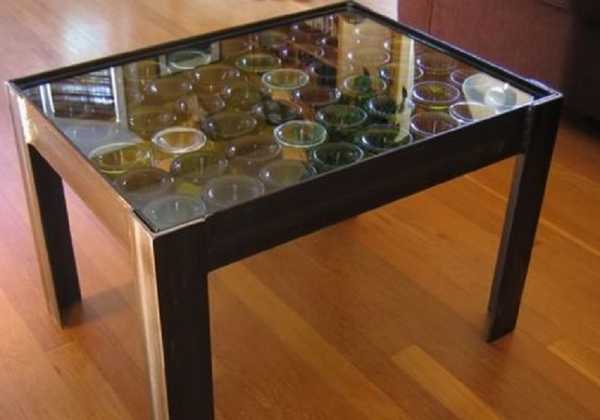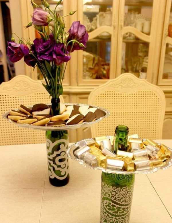 Тара нестандартной формы, стоящая по несколько штук в ряд или собранная вместе, будет украшением обеденного или журнального стола.